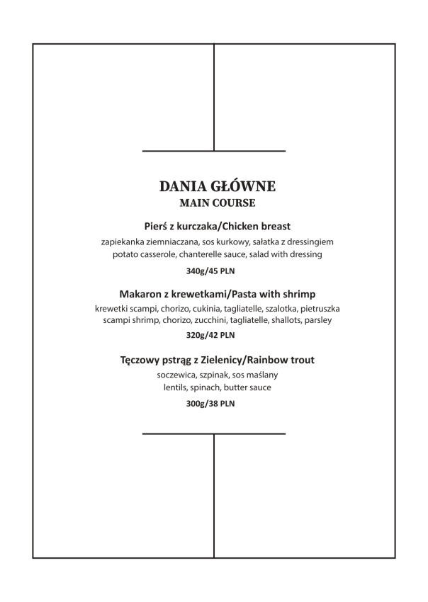 Restauracja Hotelu Austeria zaprasza Gości w kulinarną podróż łączącą tradycyjną polską kuchnię z nowoczesnymi akcentami. Nasze menu tworzone jest z dbałością o sezonowość i jakość składników, dzięki czemu serwowane potrawy zachwycają zarówno smakiem, jak i estetyką podania.