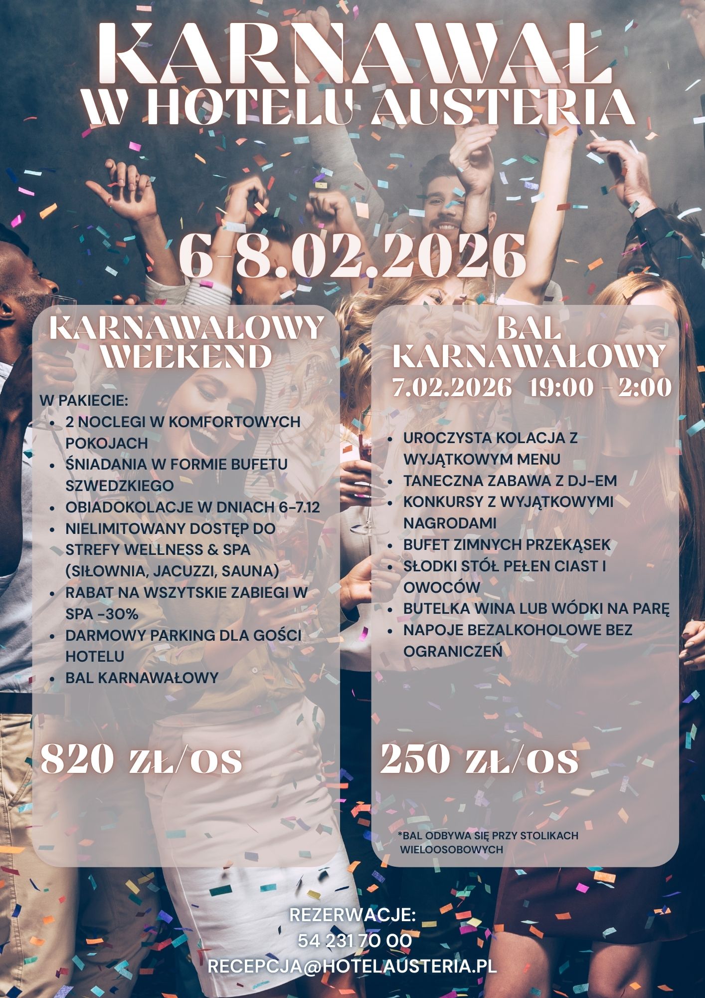 Karnawał w Hotelu Austeria – Bal Karnawałowy i Weekend Wellness